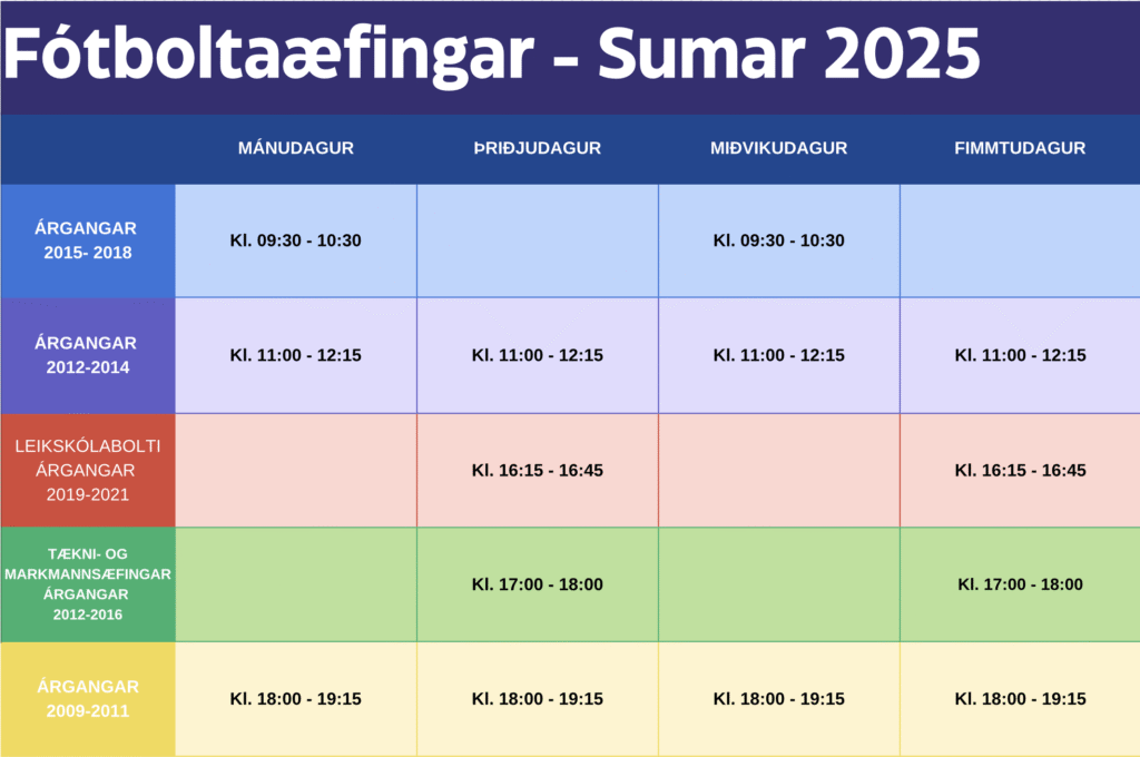 Hér má sjá æfingatöflu Neista sumarið 2025